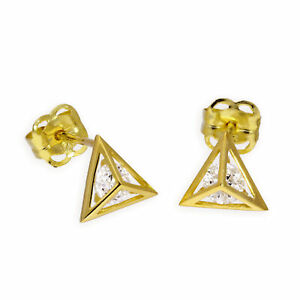 ジュエリー イヤリング ピアス Stainless Steel Polished with Crystal Triangle Omega Back Earrings